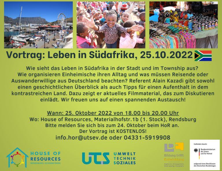 Lesen →Mit dem Fahrrad durch Afrika .....🚲🚲🚲 Begleiten Sie uns auf dieser spannenden Reise bei unserem kostenlosen Filmabend am 01.11.2022 um 18.00 Uhr in der Materialhofstr. 1 b, Rendsburg.Anmeldungen bitte unter info.hor@utsev.de 📫Wollen Sie schon vorher etwas über Südafrika hören? Dann kommen Sie zu unserem Vortrag "Leben in Südafrika" am 25.10.2022,…