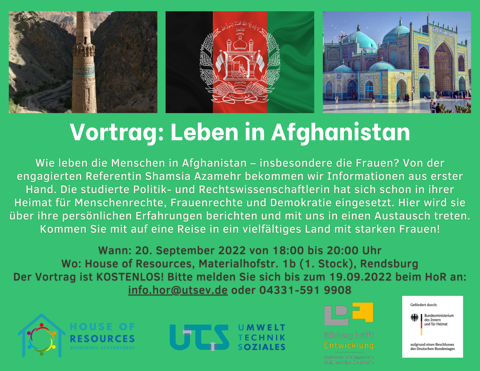 Der Vortrag ist KOSTENLOS und findet am Dienstag, 20.09.2022 um 18.00 Uhr im House of Resources, Materialhofstr.1b in Rendsburg statt. Anmeldungen bitte unter: info.hor@utsev.de