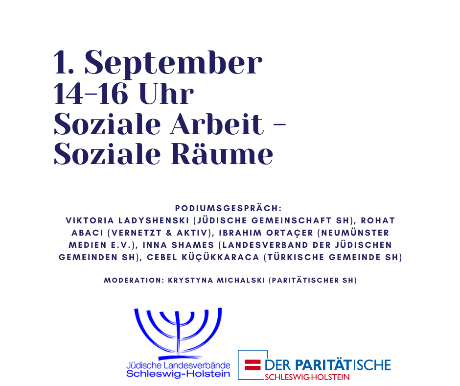 Unser Projekt WirAnachnuNahnu, das wir gemeinsam mit der Jüdischen Gemeinde Kiel und Region e.V. und Wüstenblumen e.V. durchführen, weist auf eine vierteilige Veranstaltung der Jüdischen Landesverbände und des Paritätischen Schleswig-Holstein hin: